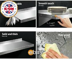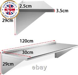 0.6 cm x 120.0 cm x 30.0 cm. Upgrade your kitchen, restaurant, hotel, or home with the Ybaymy Stainless Steel Wall Shelf. This heavy-duty, industrial-grade shelf offers not only functionality but also a touch of modern elegance. Say goodbye to cluttered countertops and hello to efficient, space-saving storage. Heavy Duty and Spacious : With a maximum load capacity of 50 kg, this commercial-grade wall shelf can comfortably store your essentials, ingredients, small appliances, and more.