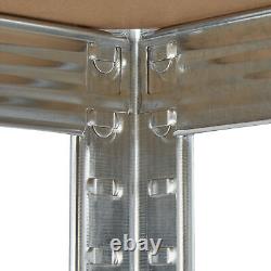 They provide vital storage for heavier items in the workshop, garage, pantry, cellar, shed or warehouse. Store your tyres, machines, tools, canned goods and other heavy items on the spacious shelving. Assemble the sturdy shelving unit made from galvanised steel according to your needs - the height of the 5 shelves can be adjusted. If required, you can divide the shelving unit in half and use the two parts separately. Tip: The practical interlocking plug-in system does not require any screws, assembly is quick and easy.You only need a rubber hammer. In some circumstances, a screwdriver is necessary to lightly bend the prongs. Heavy Duty Shelving Unit Details - Size H x W x D: approx. 180 x 90 x 45 cm 70.9 x 35.4 x 17.7 in.