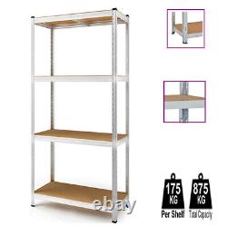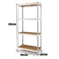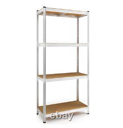These boltless shelves are ideal as only a rubber mallet or a hammer may be needed for installation. Features 4 adjustable MDF Shelf Boards Shelf Super strong MDF Board Wight Capacity: 150kg per shelf, total capacity 750kg Fully Adjustable to any level Shelf just snaps together (no bolts required), just use a rubber mallet (not included) Overall Dimensions: 1800mm(Height) x 900mm (Width) x 400mm (Depth) Colour: Galvanized Note: - Please use gloves provided when assembling the unit to avoid and mishaps. Package Content Heavy Duty 4 Tier Bolt-less Racking Storage Shelves.
