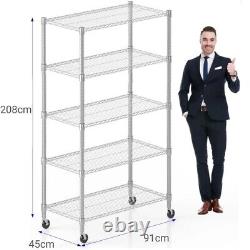 Easy to move: Fitted with 4 industrial grade castors that allow for easy repositioning and stable movement to different areas. Easy to assemble: The shelf has a simple structure and is easy to assemble. You can easily disassemble and reassemble it without tools by following the instructions and installation video.Note: To ensure that each shelf remains level, make sure that the plastic clips are attached at the same height. When attaching the plastic clips, the "TOP" arrow should point upwards. After fitting, check the clips to ensure that they do not move up or down.