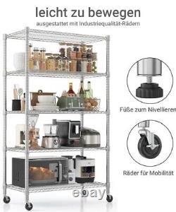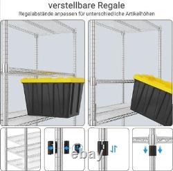 5 Tier Storage Shelves Heavy Duty Garage Shelf Height Adjustable Shelving Unit. High load capacity: Made of high-quality carbon steel and 22 mm tubes, each shelf can support up to 204 kg. When using the levelling feet, the maximum load capacity is 816 kg, and when using the castors it is 272 kg.