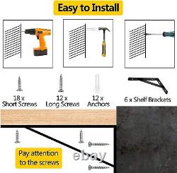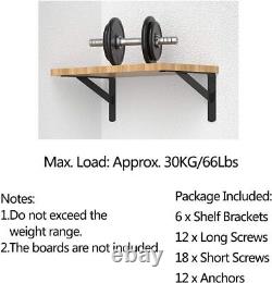 The boards are not included. Package Included: 6 x Shelf Brackets 12 x Long Screws 18 x Short Screws 12 x Anchors. The shelf brackets are made of high quality steel with a black baking finish. They are smooth surfaces, rust-proof, and corrosion-resistant. The smooth edge makes them safer and protects your hands.