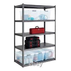 This Gorilla step beam heavy duty storage shelf rack is the ideal storage solution for organising your garage, utility room, basement or warehouse. The unit is easy to install, and has 5 shelves which adjust in 3.8cm increments. The shelving installation slot posts are concealed for a clean and finished design, while the powder-coated finish makes it durable, and rust and scratch resistant. 5 Shelves adjustable in 3.8cm increments. Tough powder-coat finish for durability. Durable melamine shelf decking is easy to keep clean. Bolt-free design allows easy installation. Max Weight Load: 294.9kg per shelf - evenly distributed / 1,474kg in total. Dimensions: H 182.9 x W 122 x D 61 cm.