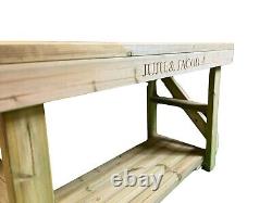 That's why we offer a range of dimensions, allowing you to choose the length and width that best fit your area. From compact setups to spacious cooking zones, we have the perfect fit for you. Heavy Duty Construction: Our tables are built to handle the demands of outdoor cooking.Whether you're grilling, baking, or prepping, you can trust the strength and stability of our table to support your culinary adventures. Sustainable Choice: We prioritise sustainability and responsibly source our wood. By choosing our table, you're supporting eco-friendly practices and sustainable materials. Optional Engraving: Personalise your table with up to 20 characters (please specify your engraving details in the order notes) NOTE: Engraving on the 7-Ft Variation will be offset. Whether you're a BBQ aficionado, a pizza enthusiast, or simply love outdoor cooking, our Heavy Duty Wooden BBQ/Pizza Oven Table is the perfect addition to your setup.