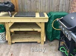 Elevate Your Outdoor Cooking Experience with our Custom Heavy Duty Wooden BBQ/Pizza Oven Table. Enhance your outdoor cooking setup with our meticulously crafted Heavy Duty Wooden BBQ/Pizza Oven Table, expertly handcrafted from premium Pressure Treated Swedish Redwood. Designed for grill masters and pizza enthusiasts, this table offers exceptional durability, versatility, and optional customisation to suit your unique preferences. Premium Swedish Redwood: Our BBQ Tables are constructed from top-quality Pressure Treated Swedish Redwood, renowned for its incredible strength and natural resistance to the elements. This ensures your table remains robust and weather-resistant, ready to withstand the rigors of outdoor cooking.