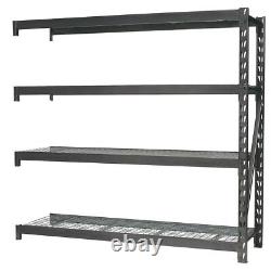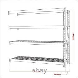 Pack includes one upright end frame and four heavy-duty wire mesh shelves. Connects to Model No's AP6572 and AP6372 to make one extra bay. No limit to the number of bays that can be added, to make a continuous run. Industrial structured beams offer added strength with 640kg capacity per level, giving a maximum capacity of 2560kg per rack.