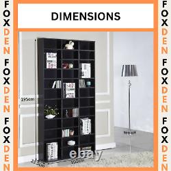 Media Storage Shelf Rack Wooden Bookcase Display Unit 10 Adjustable Shelves. This Media Storage Shelf Rack is the perfect addition to any living room or home office. With 10 adjustable shelves, it provides ample storage space for books and other items while maintaining a contemporary and modern style. The dark wood tone and solid pattern give it a classic theme that will complement any decor.