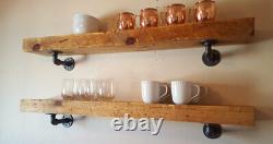 RECLAIMED Railway Sleeper - Rustic Shelves Any Size - Chunky Timber Shelves. Dimensions: Thickness 7cm X Depth 14cm X your chosen length. Every scaffold board is lightly sanded by hand to get a smooth finish but also to keep those natural characteristics that make them a great rustic feature in your home. After the sanding process is complete they are stained with two coats of the best quality wood wax by hand in our work shop and left to air dry for 48 hours. The wax we use makes the shelves scratch resistant and also water repellent so are ideal for the home and will keep that rustic feel for a very long time.
