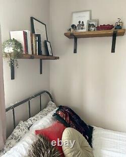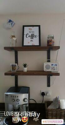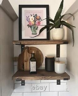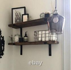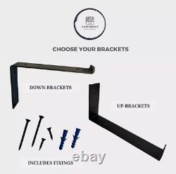 Bespoke Sizing - Choice of Down / Up Brackets - 6 Colour Options - With Fixings. 2 x BLACK METAL BRACKETS. We are confident you'll love our gorgeous shelves handmade in Lancashire. Our stunning handmade timber shelving will look fantastic in any room; kitchen, living room, dining room. Bathroom, bedroom, study or children's rooms.