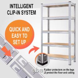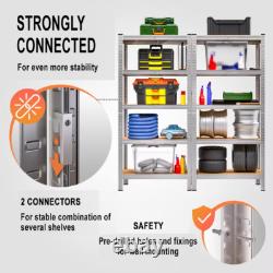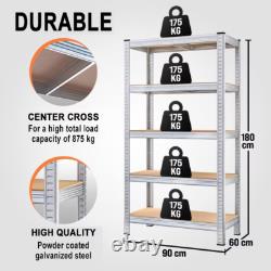 Set of 2 Garage Shelving Units Metal Heavy Duty Warehouse Storage Shelves. Maximise your storage efficiency with these robust Heavy Duty metal garage shelving units. Each unit stands at a towering 180cm in height and extends 90cm in length, providing ample space for an organised and spacious storage solution. The set includes two units, each designed to bear a substantial load of up to 875kg, making them ideal for securely stowing heavy tools and equipment.
