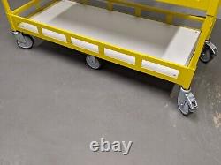 6 x roues en caoutchouc avec roulettes verrouillables. Mesures approximatives: Longueur 130cm, Largeur 55cm, Hauteur 115cm. Mesures approximatives avec poignée Longueur 144cm, Largeur 55cm, Hauteur 115cm. Chariot en très bon état avec des signes minimes d'usure - voir photos pour exemples.