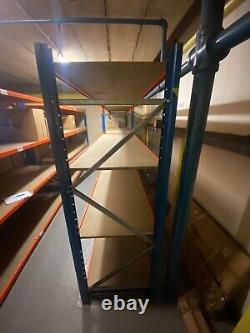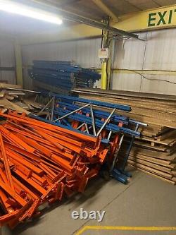 2 montants de 2,25 m de hauteur. 8 poutres qui vous donnent une largeur de stockage de 2,55 m de long. La profondeur des étagères est de 80 cm. Ce rayonnage est en très bon état et est de type industriel, ce qui signifie qu'il est solide et non pas le type fragile et moins cher que l'on voit normalement.